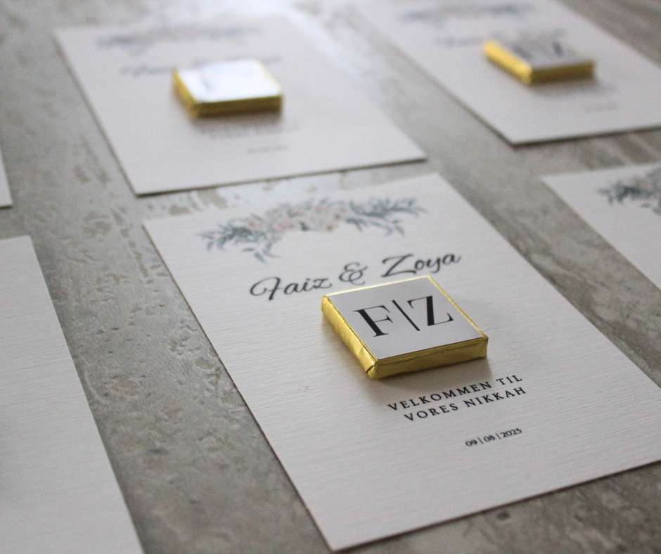 Hvert kort er omhyggeligt designet og leveres med en lille, lækker chokolade, der spreder glæde ved første øjekast.