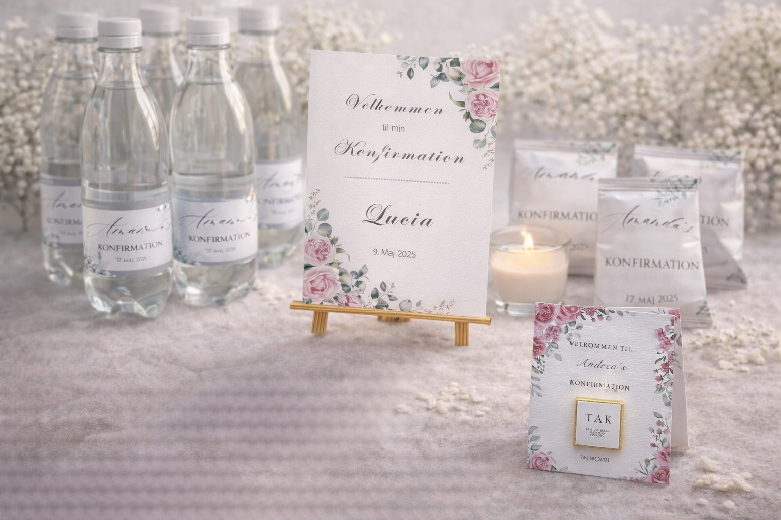 Vælg mellem tidløs elegance, moderne minimalisme eller eksklusive farvetemaer, og skab en konfirmation, hvor hver detalje er nøje afstemt. Når stil, materialer og farver går op i en højere enhed, opstår en stemning, der gør dagen både personlig og mindeværdig.